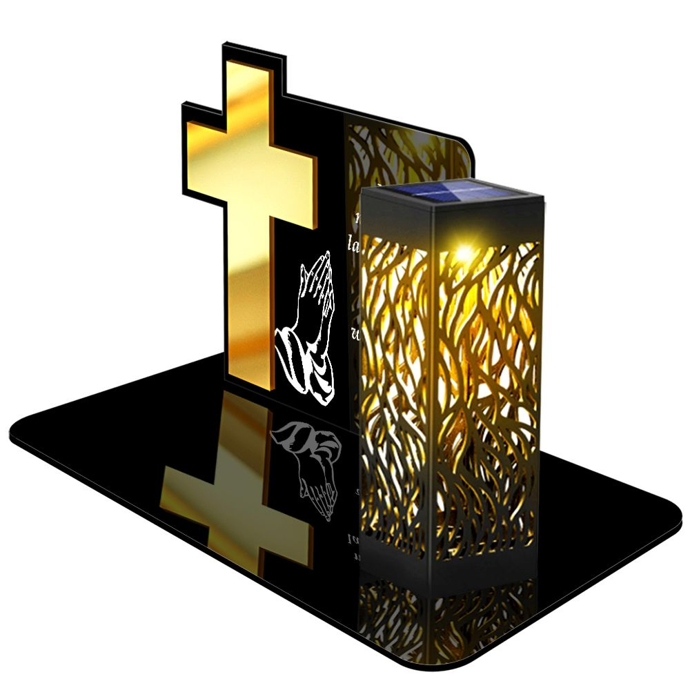 • ZNICZ SOLARNY LED WIECZNY PODSTAWKA NA CMENTARZ GRÓB lampka Krzyż 3D