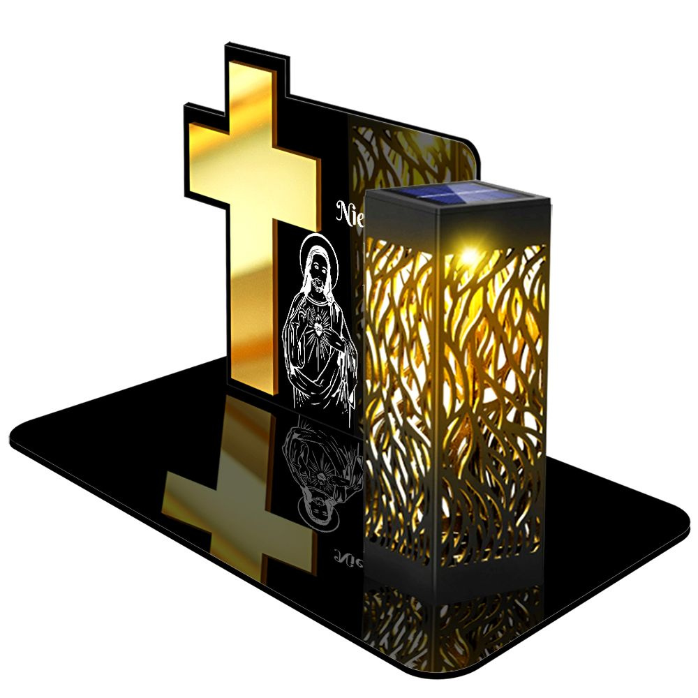 • ZNICZ SOLARNY LED WIECZNY PODSTAWKA NA CMENTARZ GRÓB lampka Krzyż 3D