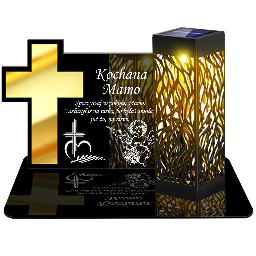 ZNICZ SOLARNY LED WIECZNY PODSTAWKA NA CMENTARZ GRÓB lampka Krzyż 3D DLA MAMY