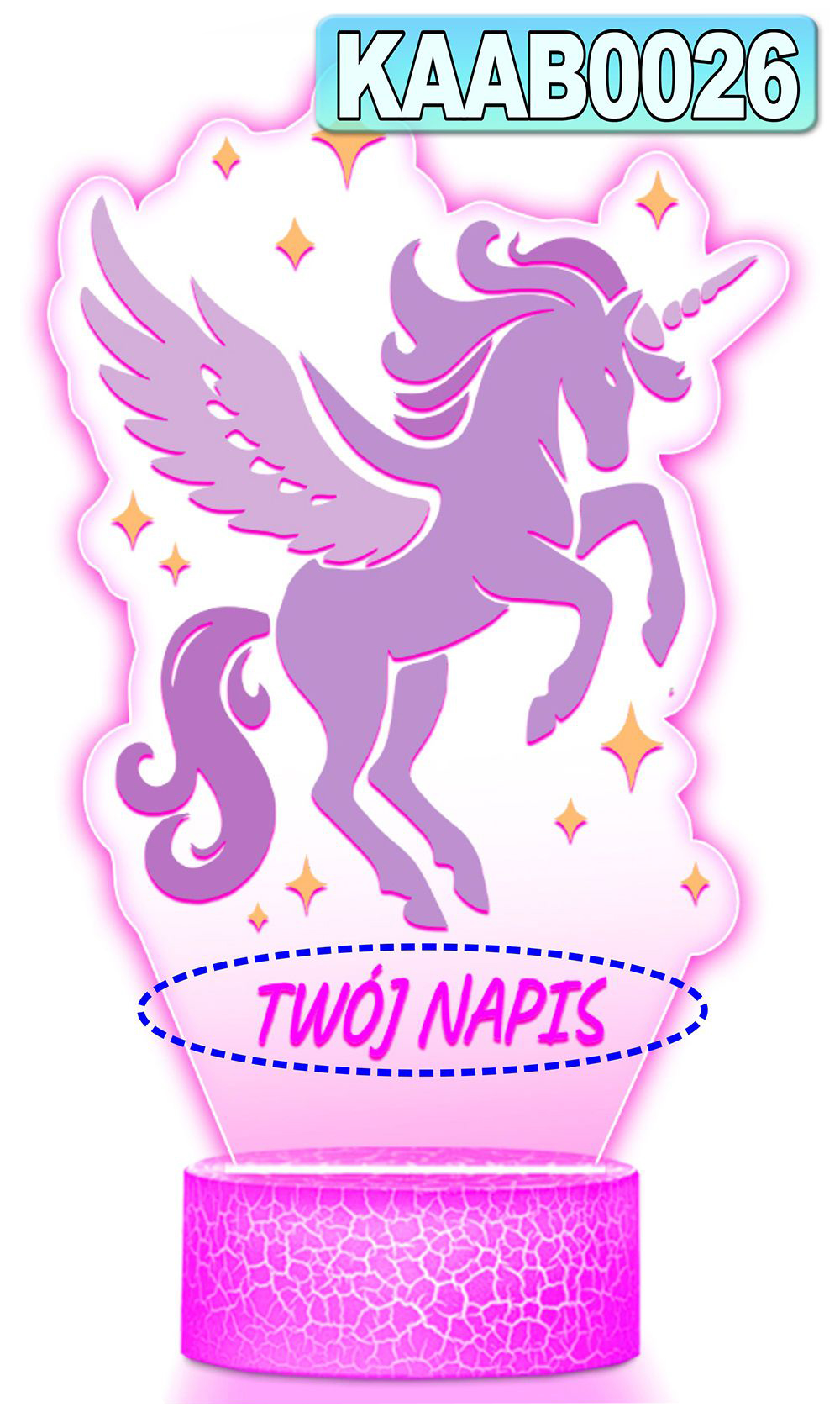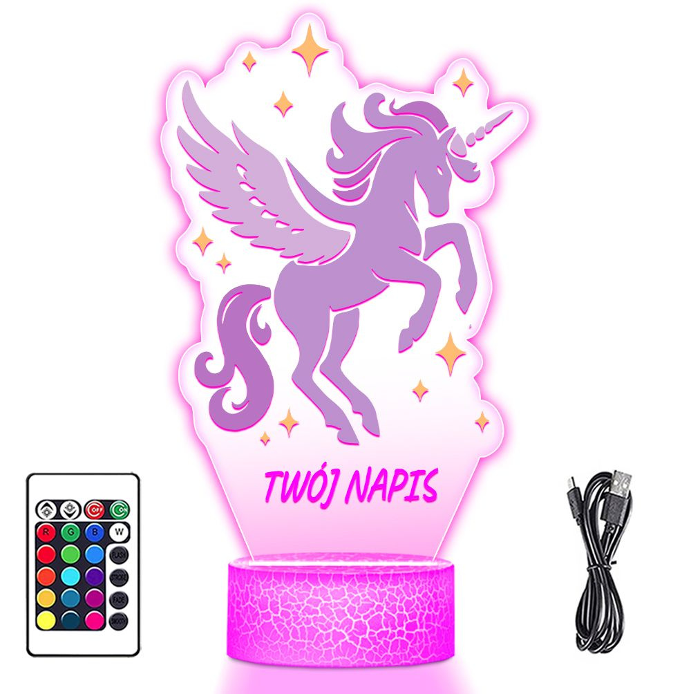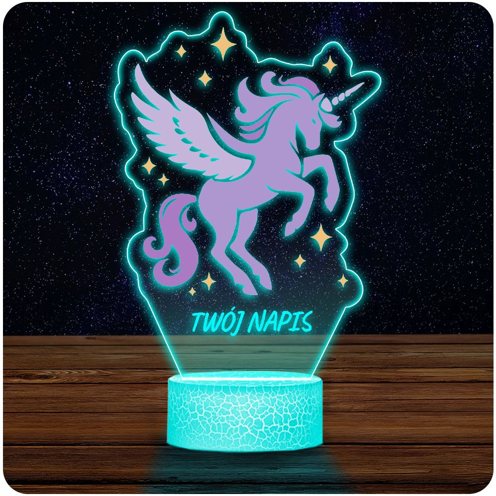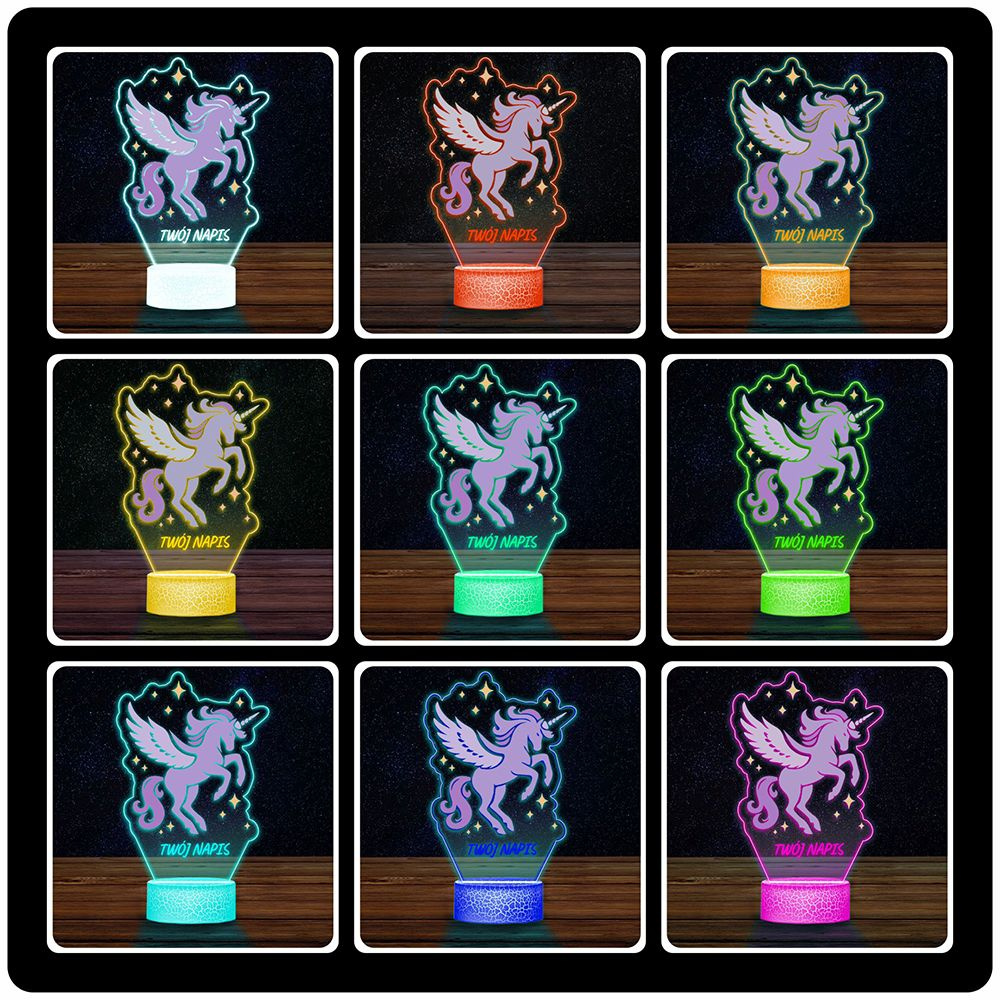 • Lampka Nocna LED 3D z Imieniem Jednorożec Prezent dla Dziewczynki Urodziny