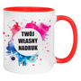 Biało-czerwony ceramiczny kubek z własnym nadrukiem – zdjęcie, logo, tekst, grafika, logo firmowe