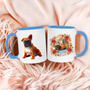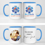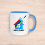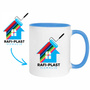 Biało-niebieski ceramiczny kubek z własnym nadrukiem – zdjęcie, logo, tekst, grafika, logo firmowe