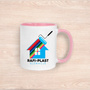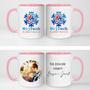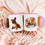 Biało-różowy ceramiczny kubek z własnym nadrukiem – zdjęcie, logo, tekst, grafika, logo firmowe