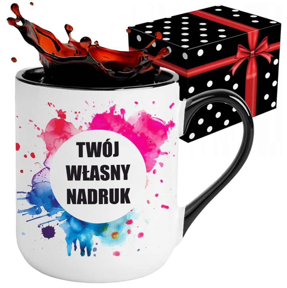 Biało-czarny ceramiczny kubek z własnym nadrukiem – zdjęcie, logo, tekst, grafika, logo firmowe