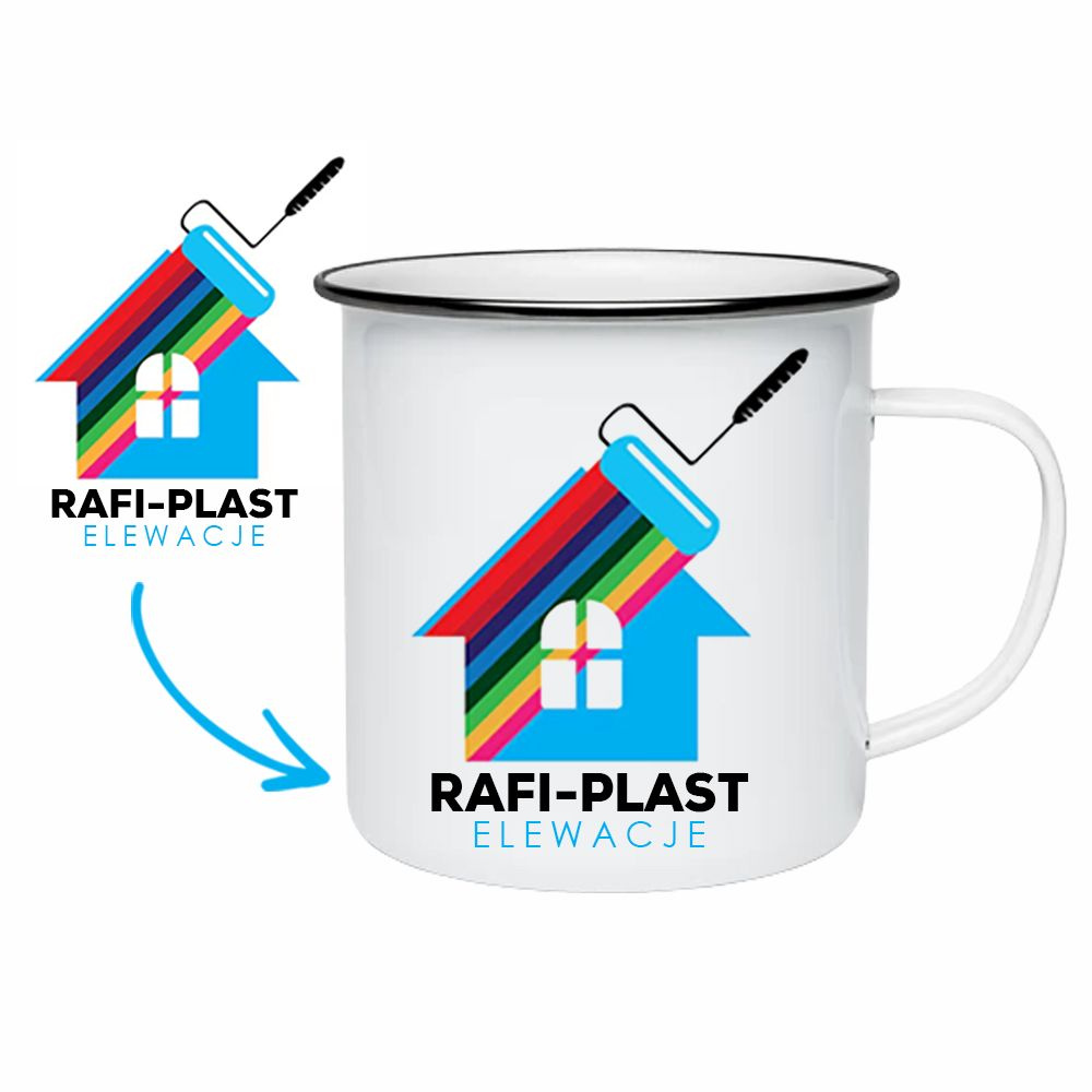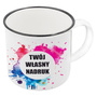 Biało-czarny ceramiczny kubek z własnym nadrukiem – zdjęcie, logo, tekst, grafika, logo firmowe