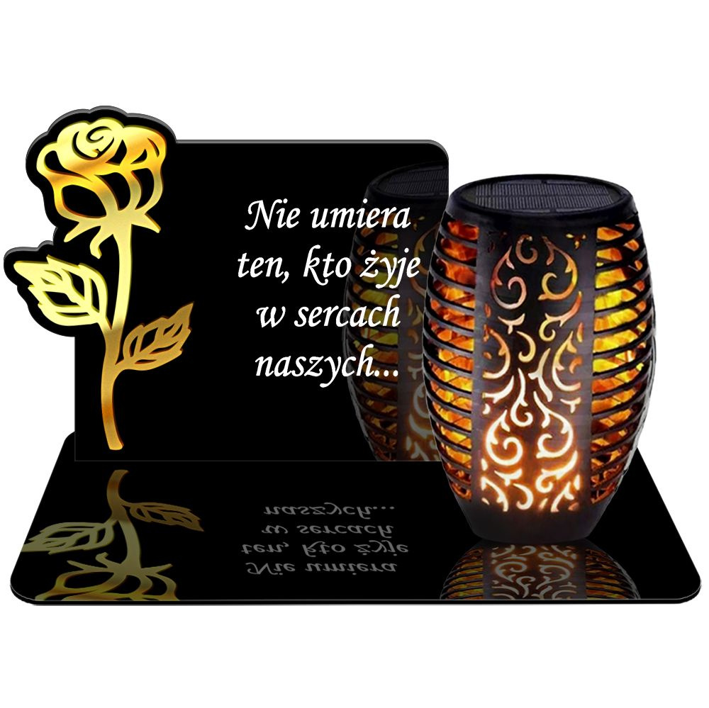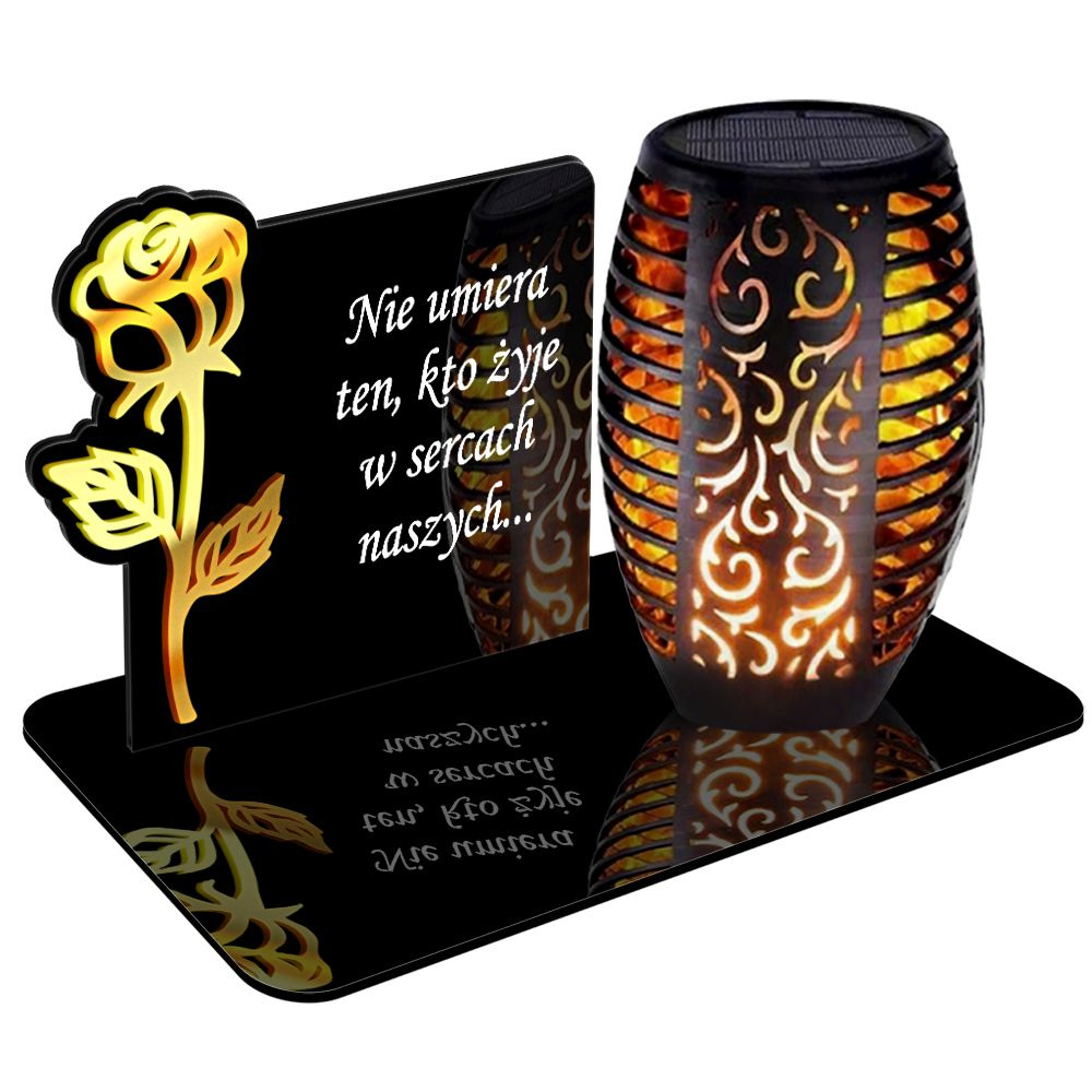 • ZNICZ SOLARNY LED WIECZNY PODSTAWKA NA CMENTARZ GRÓB Róża EFEKT PŁOMIENIA