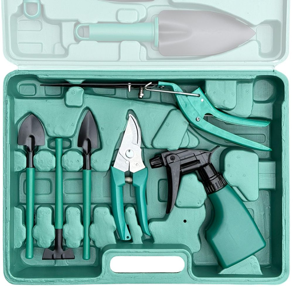 W eleganckiej walizce znajduje się komplet narzędzi, które ułatwią pielęgnację roślin i sprawią, że każda chwila w ogrodzie będzie przyjemnością.