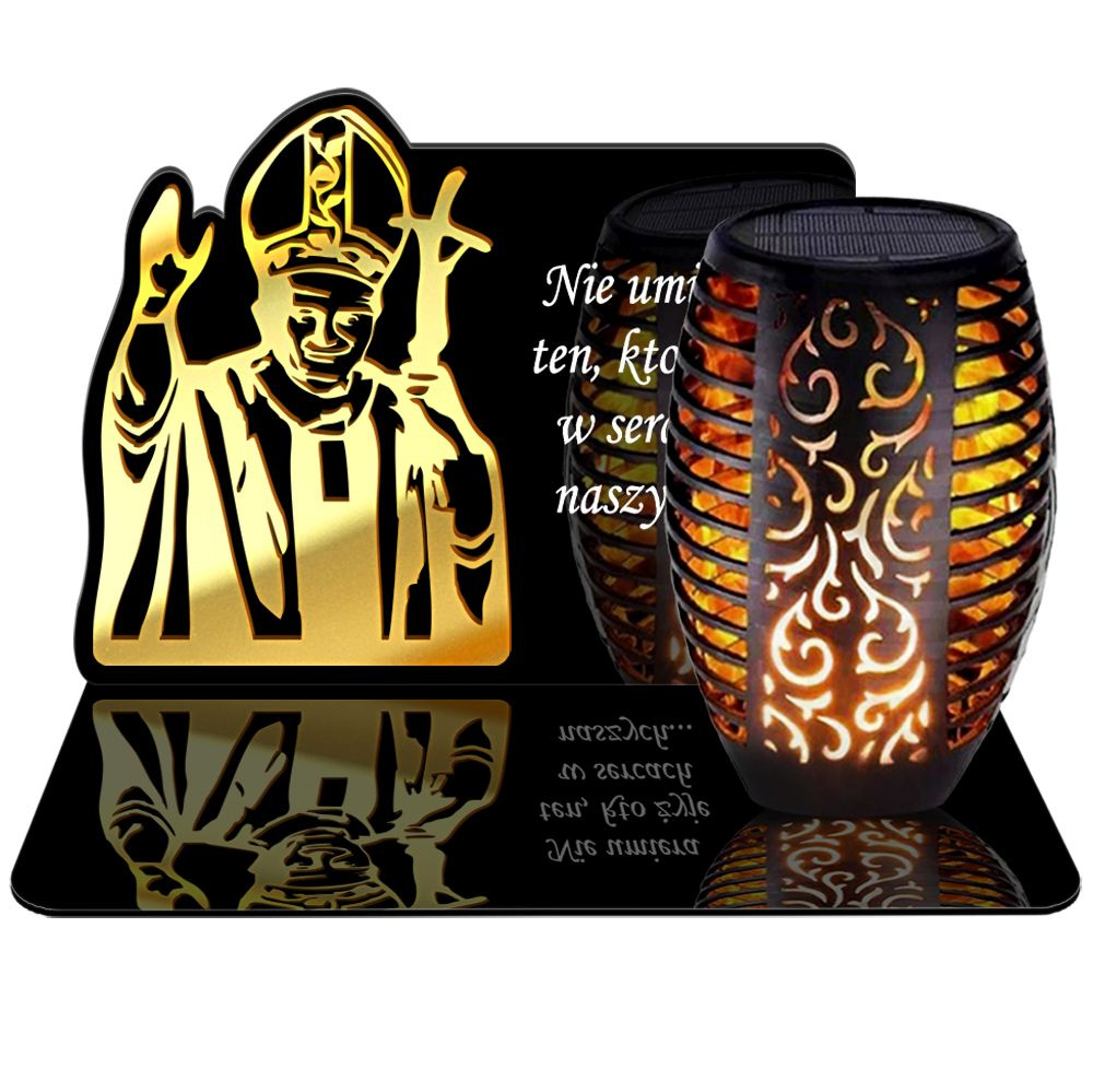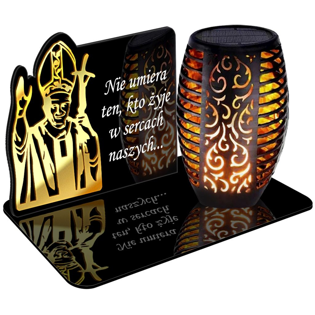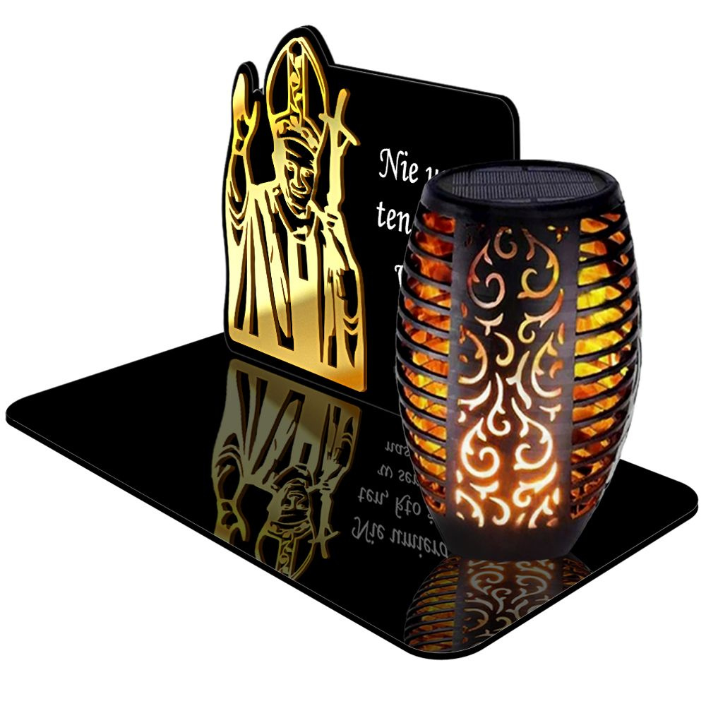 ZNICZ SOLARNY LED WIECZNY PODSTAWKA NA CMENTARZ GRÓB Papież EFEKT PŁOMIENIA
