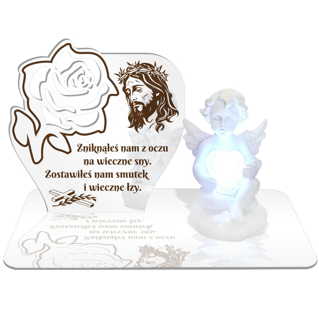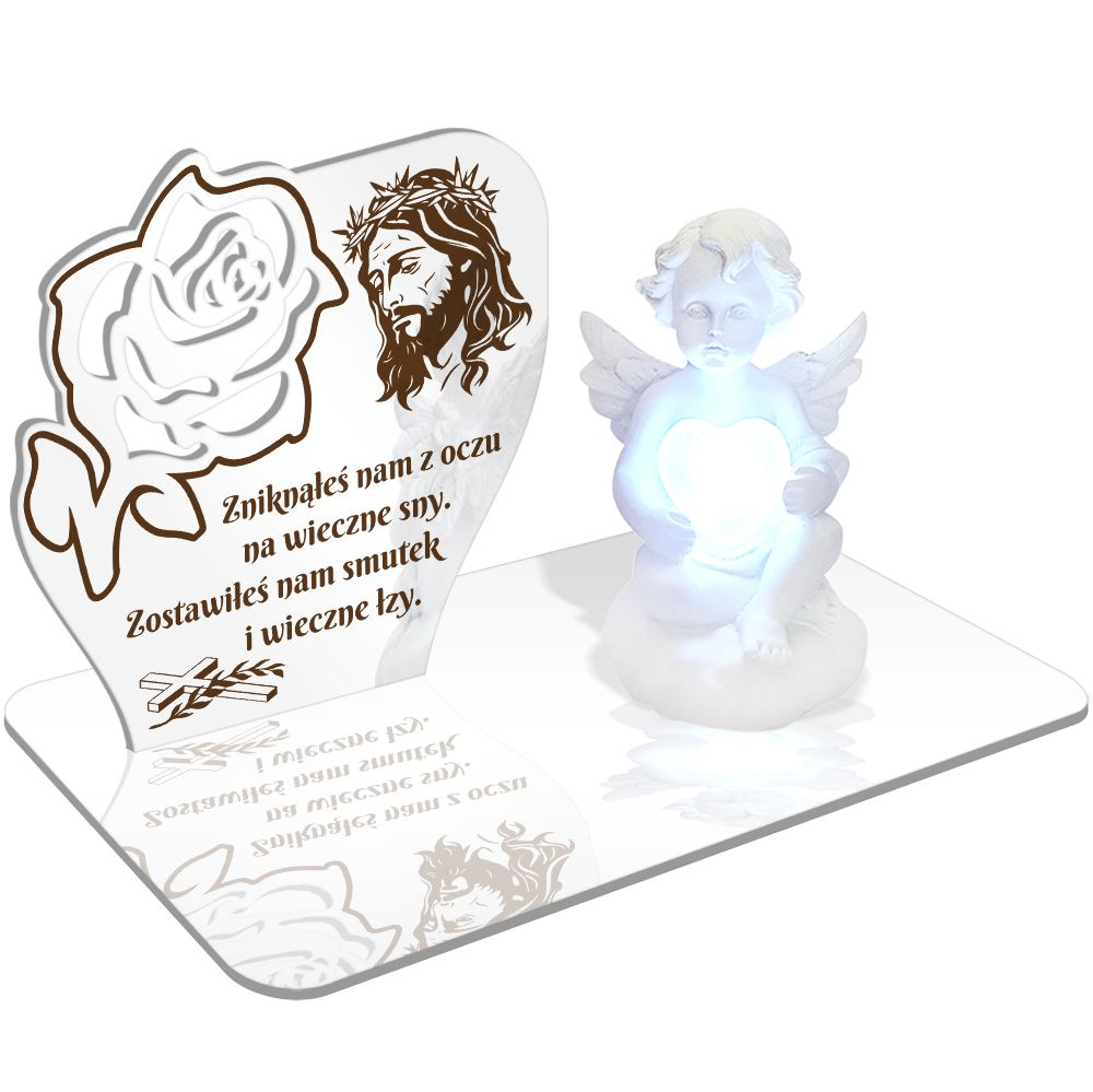 • ZNICZ LED GRÓB Dziecka Córki Syna ANIOŁEK PODSTAWKA NA CMENTARZ BIAŁY ANIOŁ