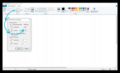 zmieniamy rozmiar pola roboczego w pikselach na : 2480x1146