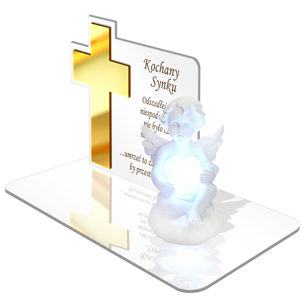 ZNICZ LED GRÓB Dziecka Córki Syna ANIOŁEK PODSTAWKA NA CMENTARZ BIAŁY ANIOŁ