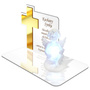 BIAŁY ZNICZ LED PREMIUM z złotym zdobieniem - znicz ANIOŁEK ŚWIECĄCY Z SERCEM LED