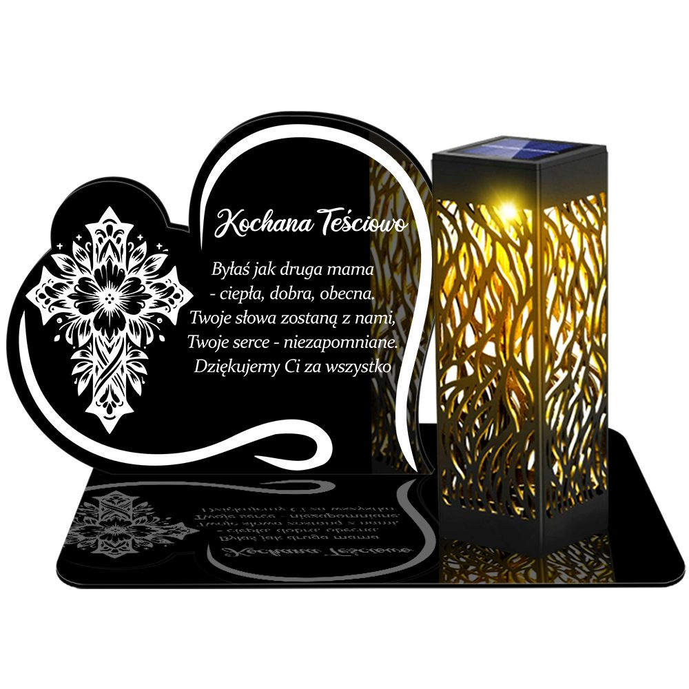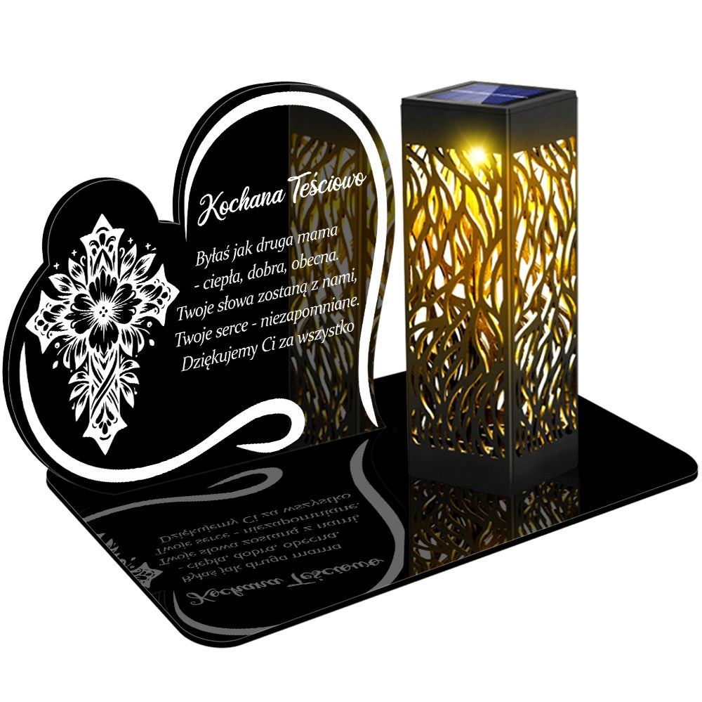 • ZNICZ SOLARNY LED WIECZNY PODSTAWKA NA CMENTARZ GRÓB lampka Napis Serce 3D  DLA TEŚCIOWEJ