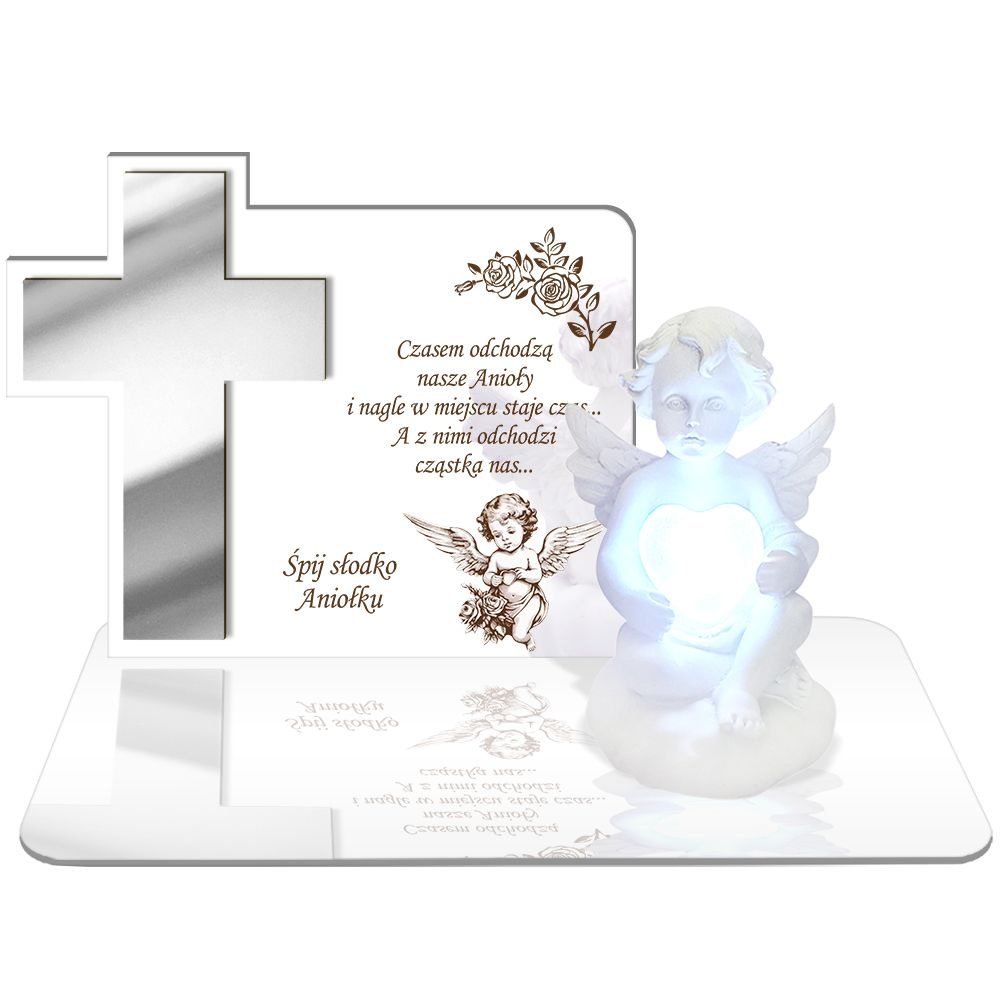 • ZNICZ LED GRÓB Dziecka Córki Syna ANIOŁEK PODSTAWKA NA CMENTARZ BIAŁY ANIOŁ