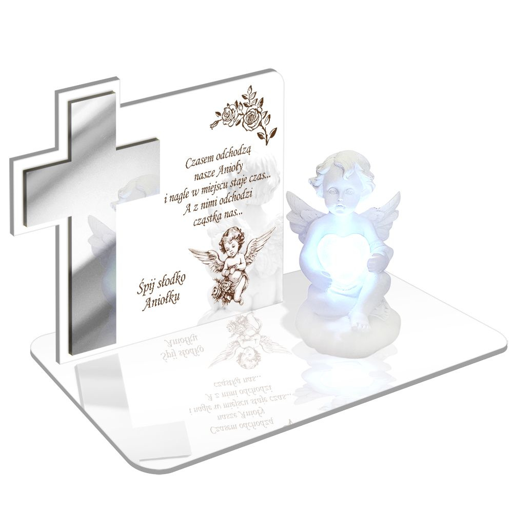 ZNICZ LED GRÓB Dziecka Córki Syna ANIOŁEK PODSTAWKA NA CMENTARZ BIAŁY ANIOŁ