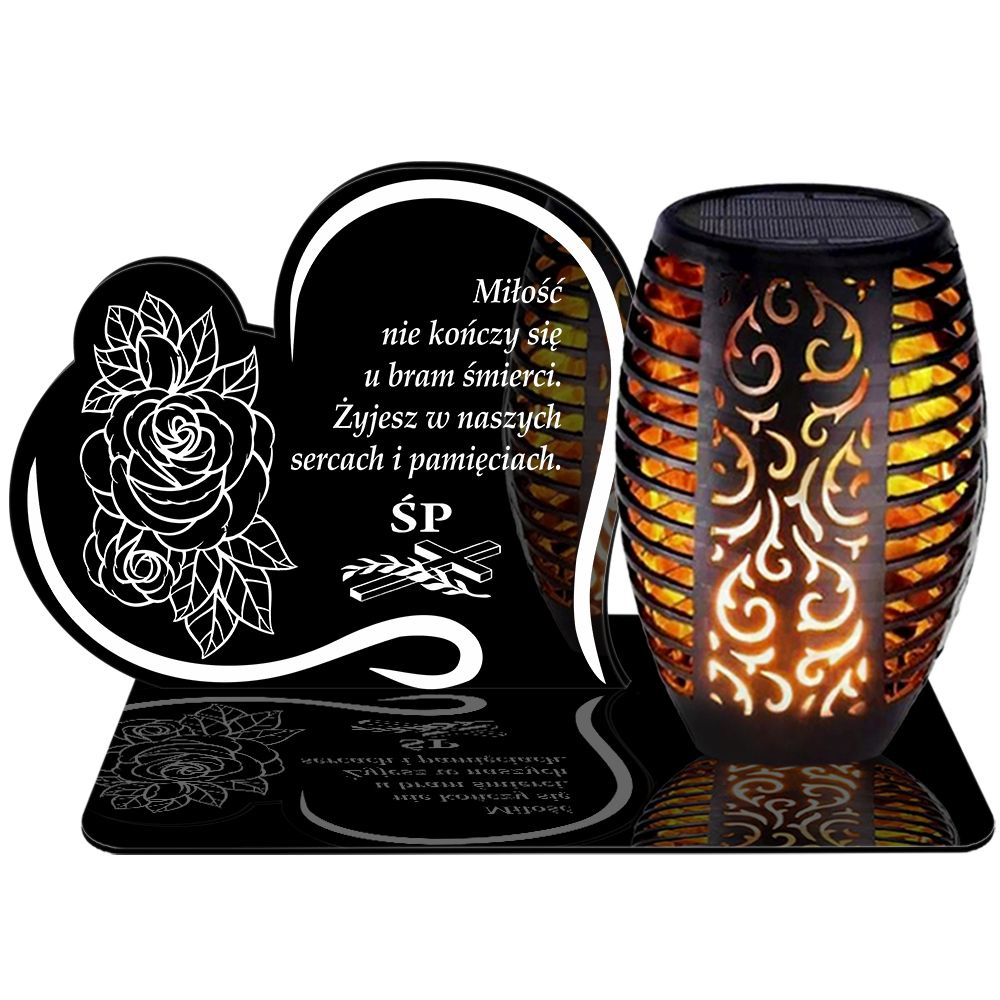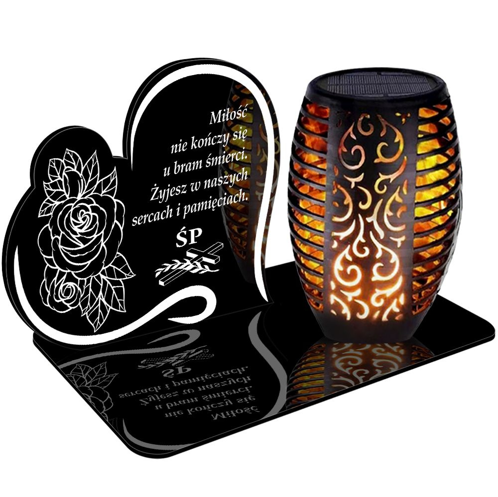 ZNICZ SOLARNY LED PREMIUM XL z zdobieniem - wieczny znicz z wbudowanym czujnikiem zmierzchu i WKŁADEM Z EFEKTEM PŁOMIENIA
