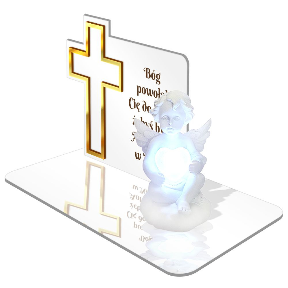 ZNICZ LED GRÓB Dziecka Córki Syna ANIOŁEK PODSTAWKA NA CMENTARZ BIAŁY ANIOŁ