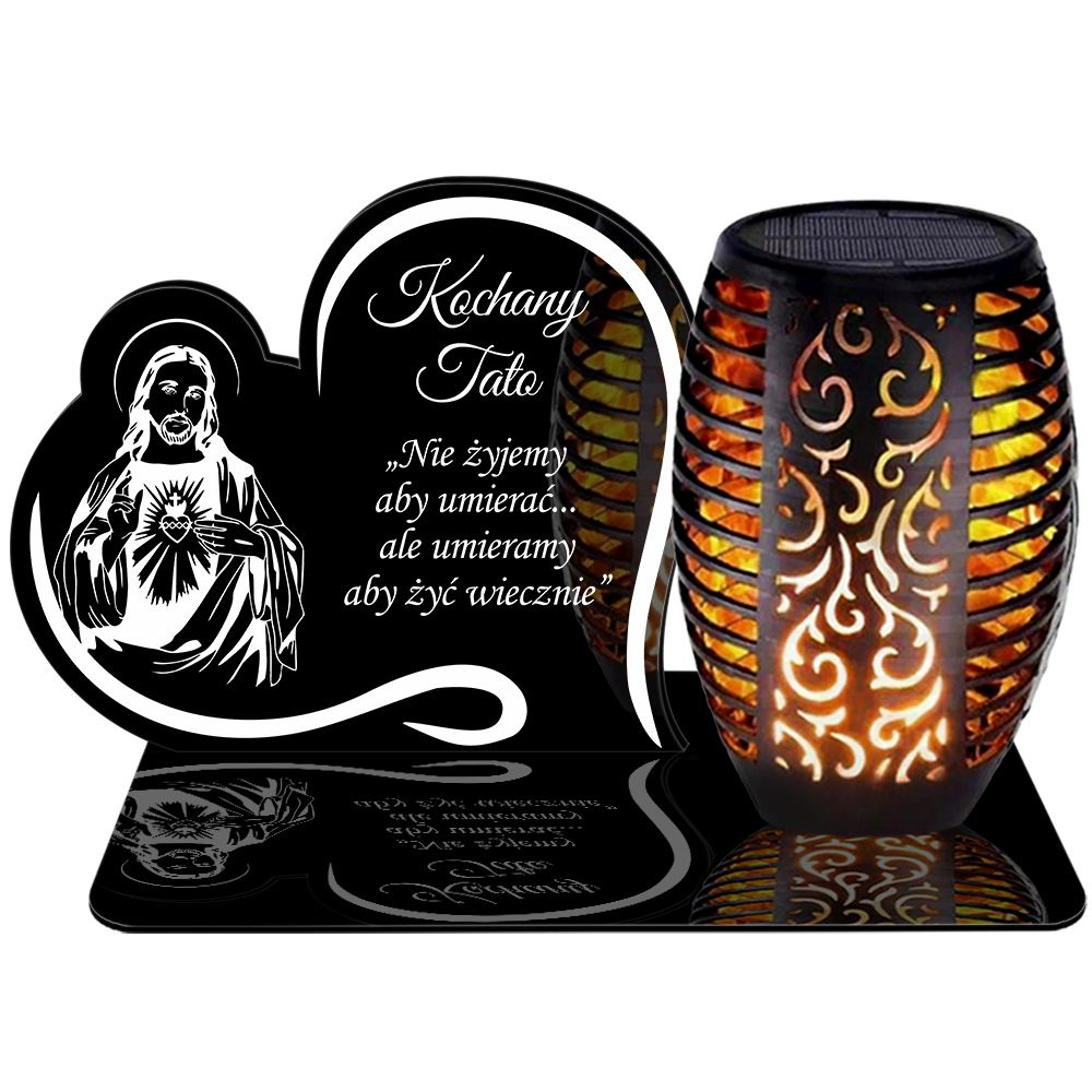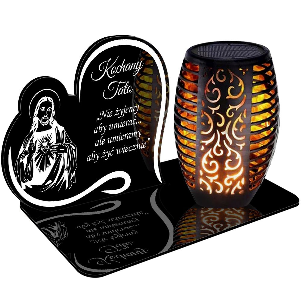 ZNICZ SOLARNY LED WIECZNY PODSTAWKA NA CMENTARZ GRÓB Serce EFEKT PŁOMIENIA DLA TATY