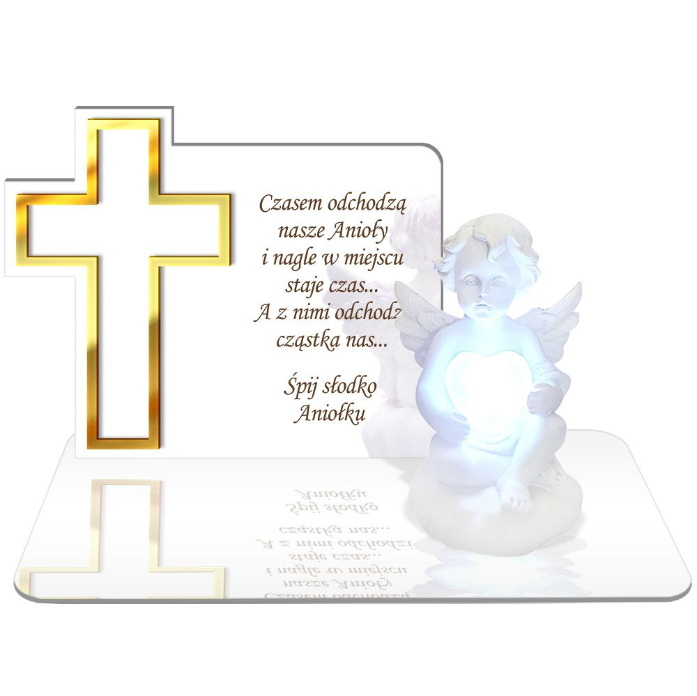 ZNICZ LED GRÓB Dziecka Córki Syna ANIOŁEK PODSTAWKA NA CMENTARZ BIAŁY ANIOŁ