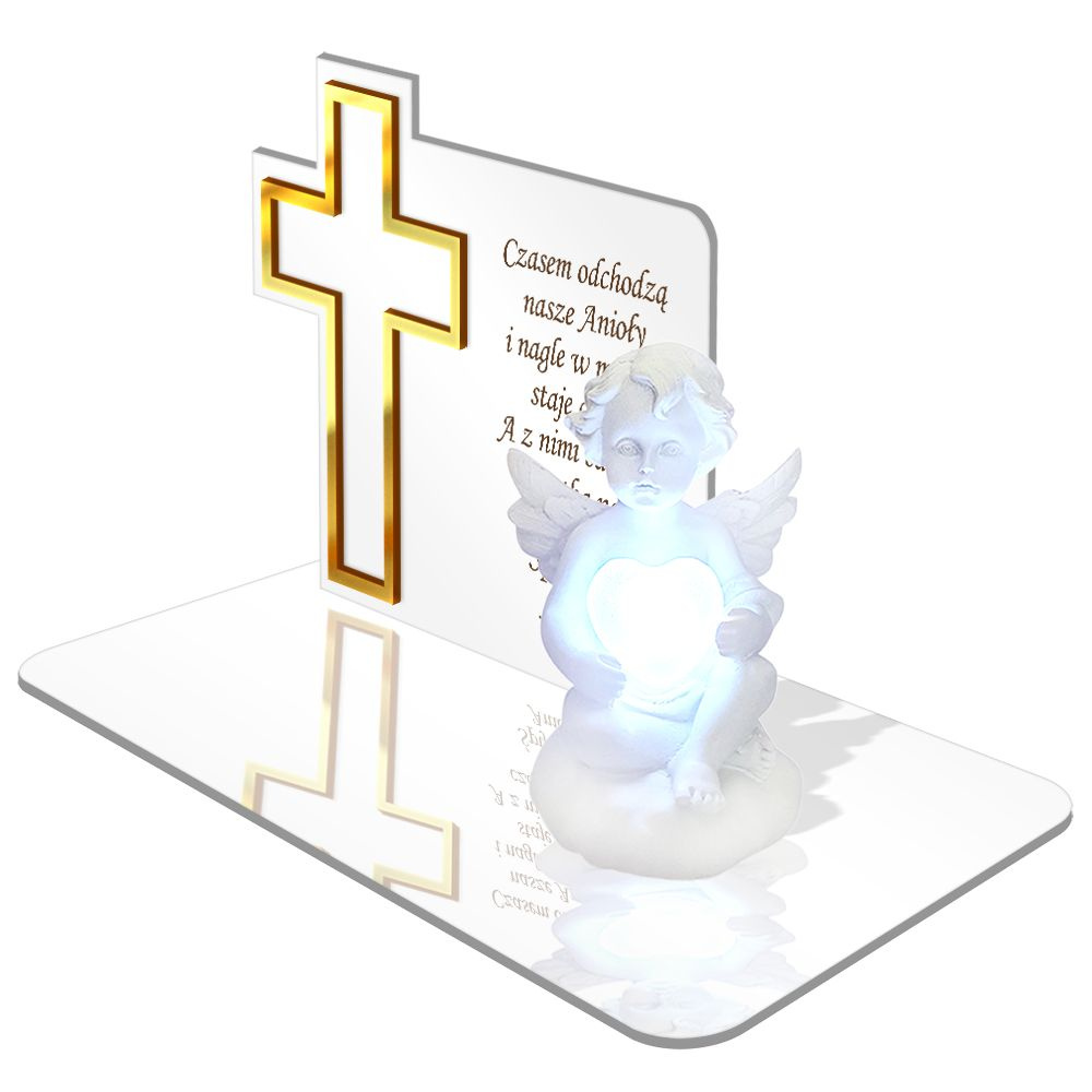 • ZNICZ LED GRÓB Dziecka Córki Syna ANIOŁEK PODSTAWKA NA CMENTARZ BIAŁY ANIOŁ