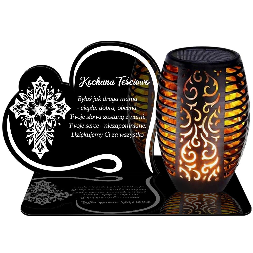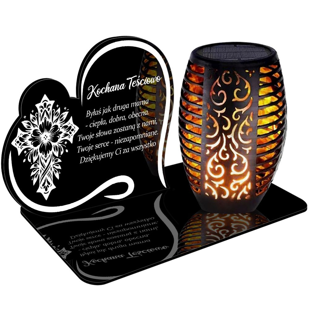 ZNICZ SOLARNY LED WIECZNY PODSTAWKA NA CMENTARZ GRÓB Serce EFEKT PŁOMIENIA DLA TEŚCIOWEJ
