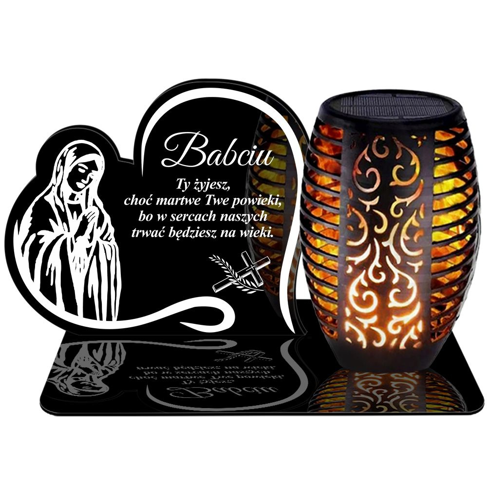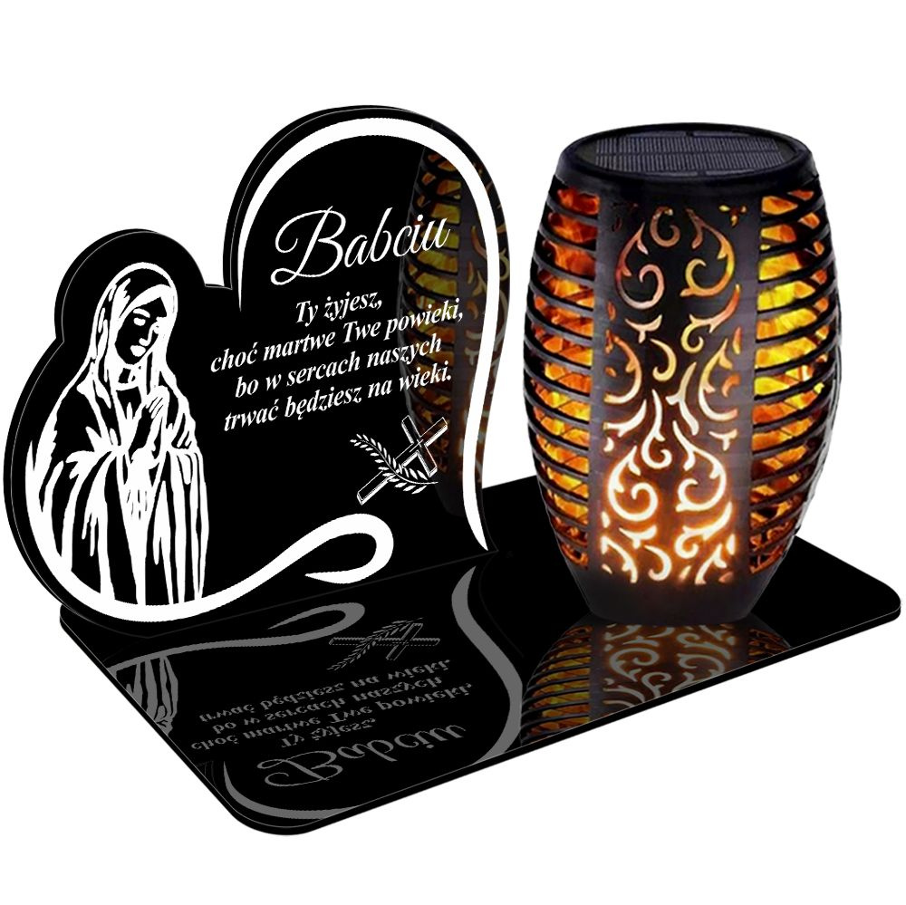 ZNICZ SOLARNY LED PREMIUM XL z zdobieniem - wieczny znicz z wbudowanym czujnikiem zmierzchu i WKŁADEM Z EFEKTEM PŁOMIENIA