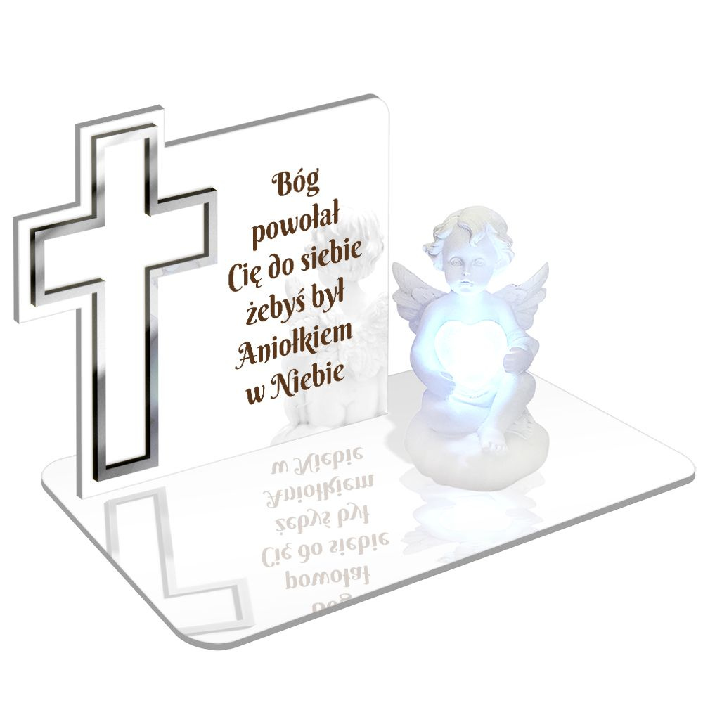 ZNICZ LED GRÓB Dziecka Córki Syna ANIOŁEK PODSTAWKA NA CMENTARZ BIAŁY ANIOŁ