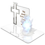 BIAŁY ZNICZ LED PREMIUM ze srebrnym zdobieniem - znicz ANIOŁEK ŚWIECĄCY Z SERCEM LED