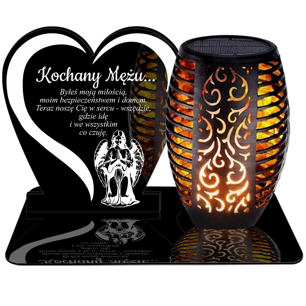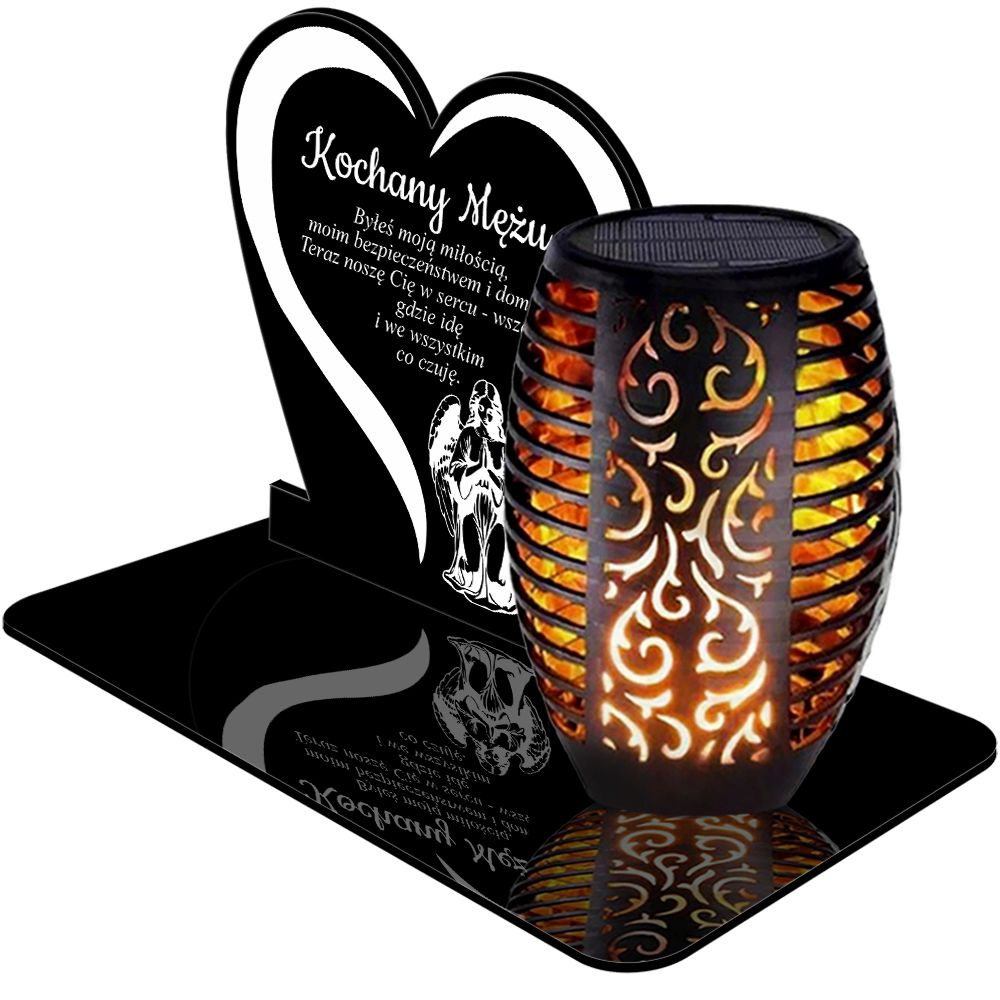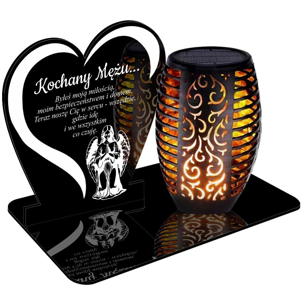 ZNICZ SOLARNY LED WIECZNY PODSTAWKA NA CMENTARZ GRÓB Serce EFEKT PŁOMIENIA DLA MĘŻA