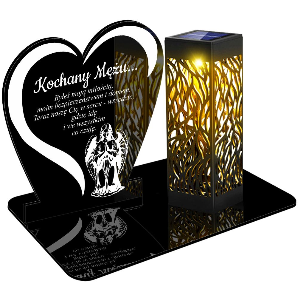 ZNICZ SOLARNY LED WIECZNY PODSTAWKA NA CMENTARZ GRÓB lampka Napis Serce 3D DLA MĘŻA