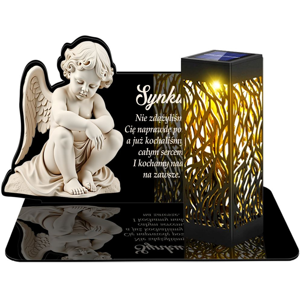 ZNICZ SOLARNY LED WIECZNY NA CMENTARZ GRÓB Aniołek dziecka dla SYNA