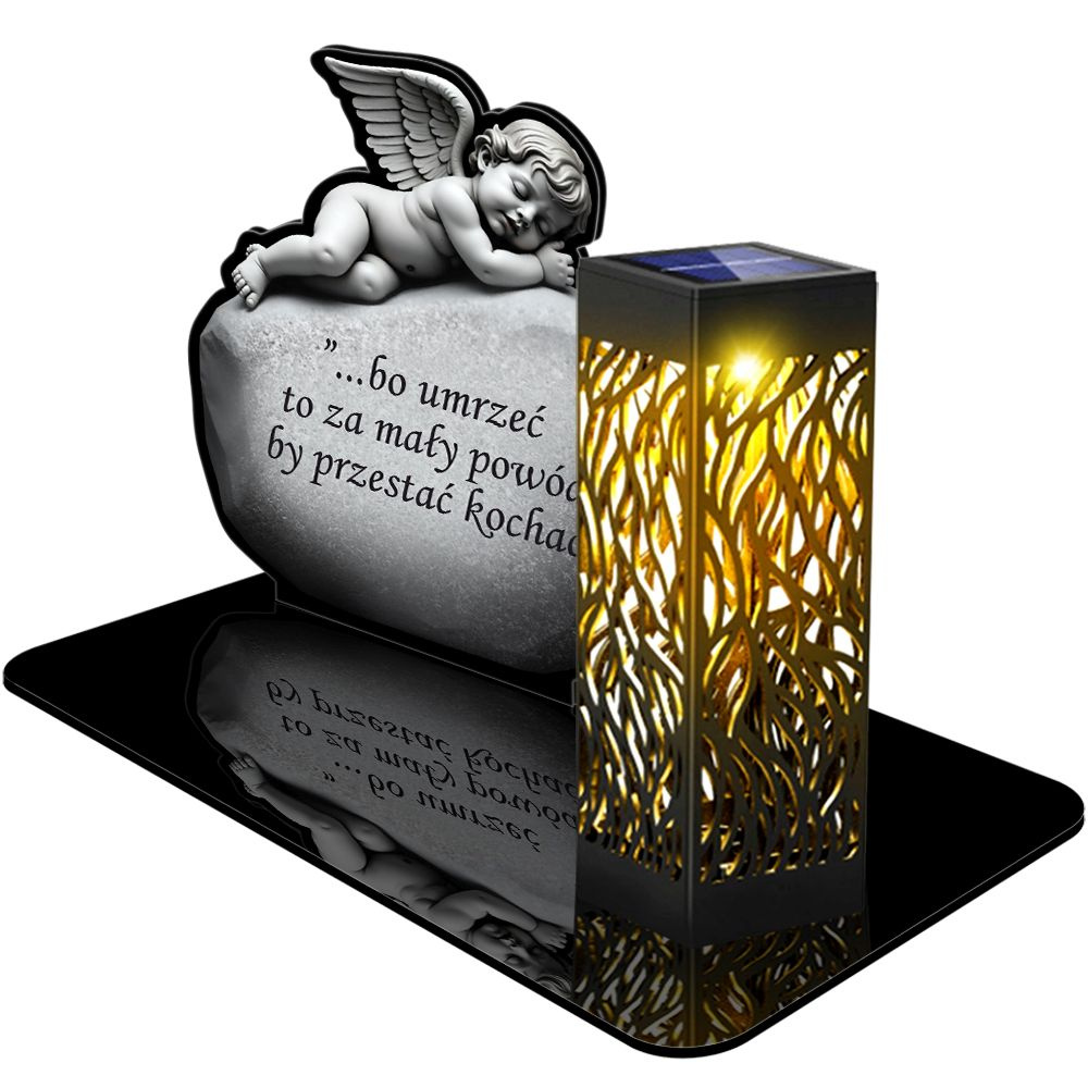 • ZNICZ SOLARNY LED WIECZNY NA CMENTARZ GRÓB Anioł Stróż Na Kamieniu