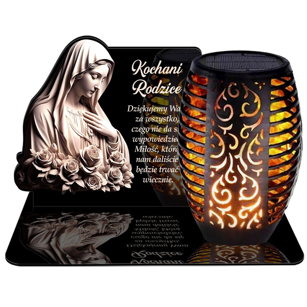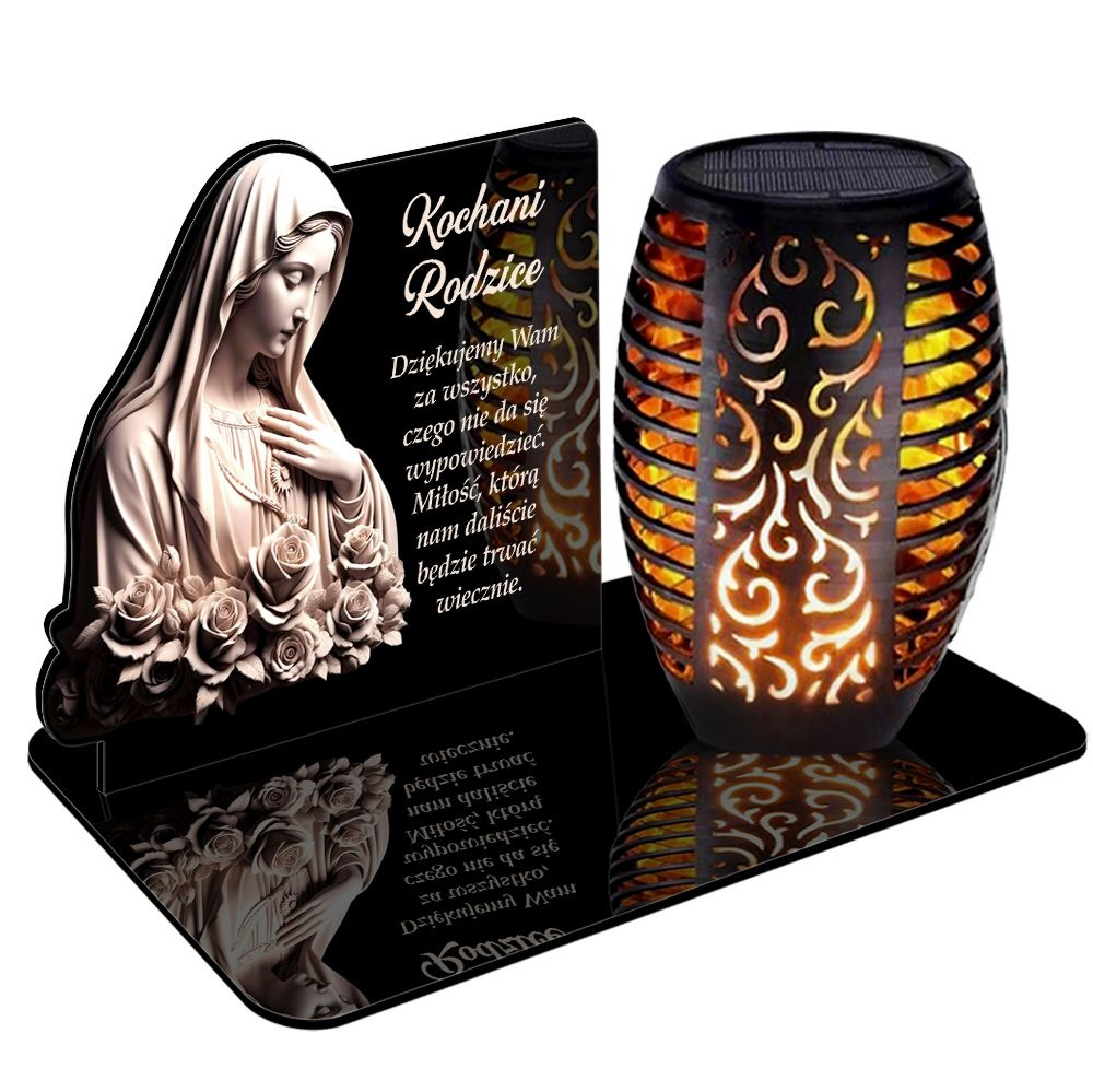 ZNICZ SOLARNY LED PREMIUM XL z zdobieniem - wieczny znicz z wbudowanym czujnikiem zmierzchu i WKŁADEM Z EFEKTEM PŁOMIENIA