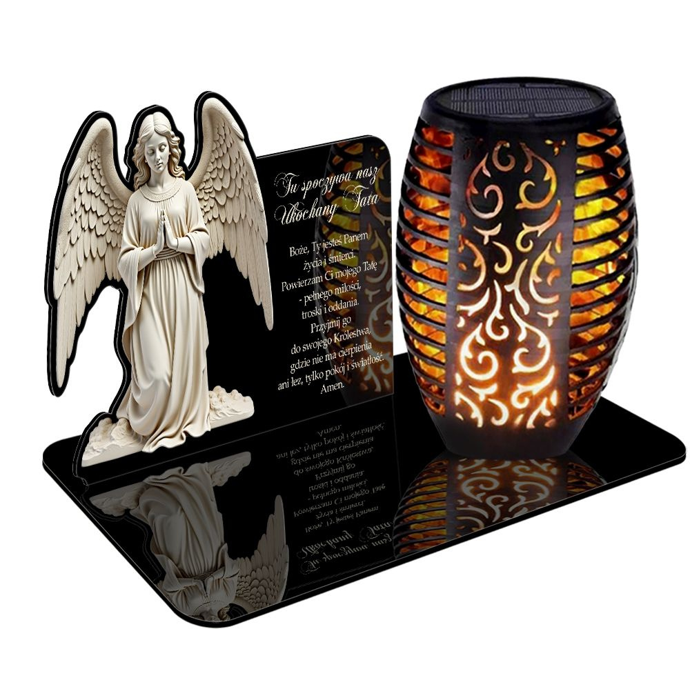ZNICZ SOLARNY LED WIECZNY PODSTAWKA NA CMENTARZ GRÓB Aniołek EFEKT PŁOMIENIA dla DLA TATY