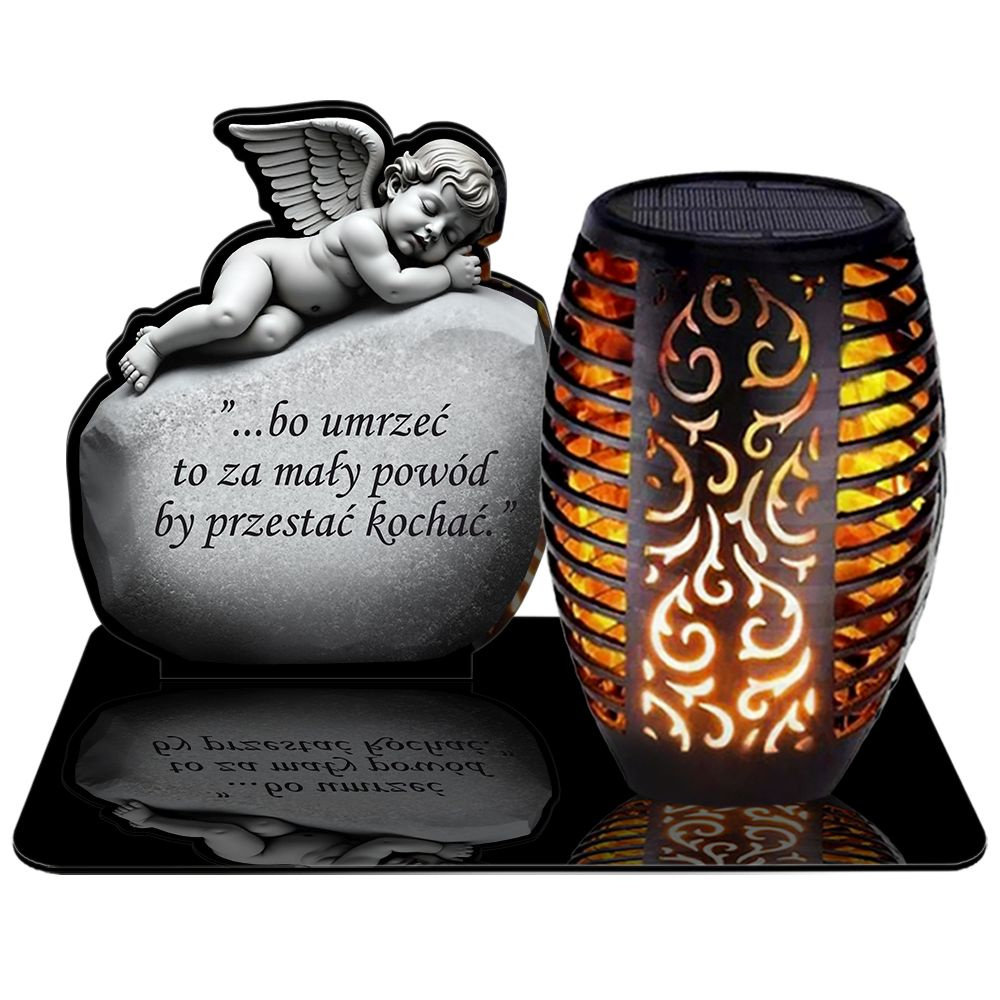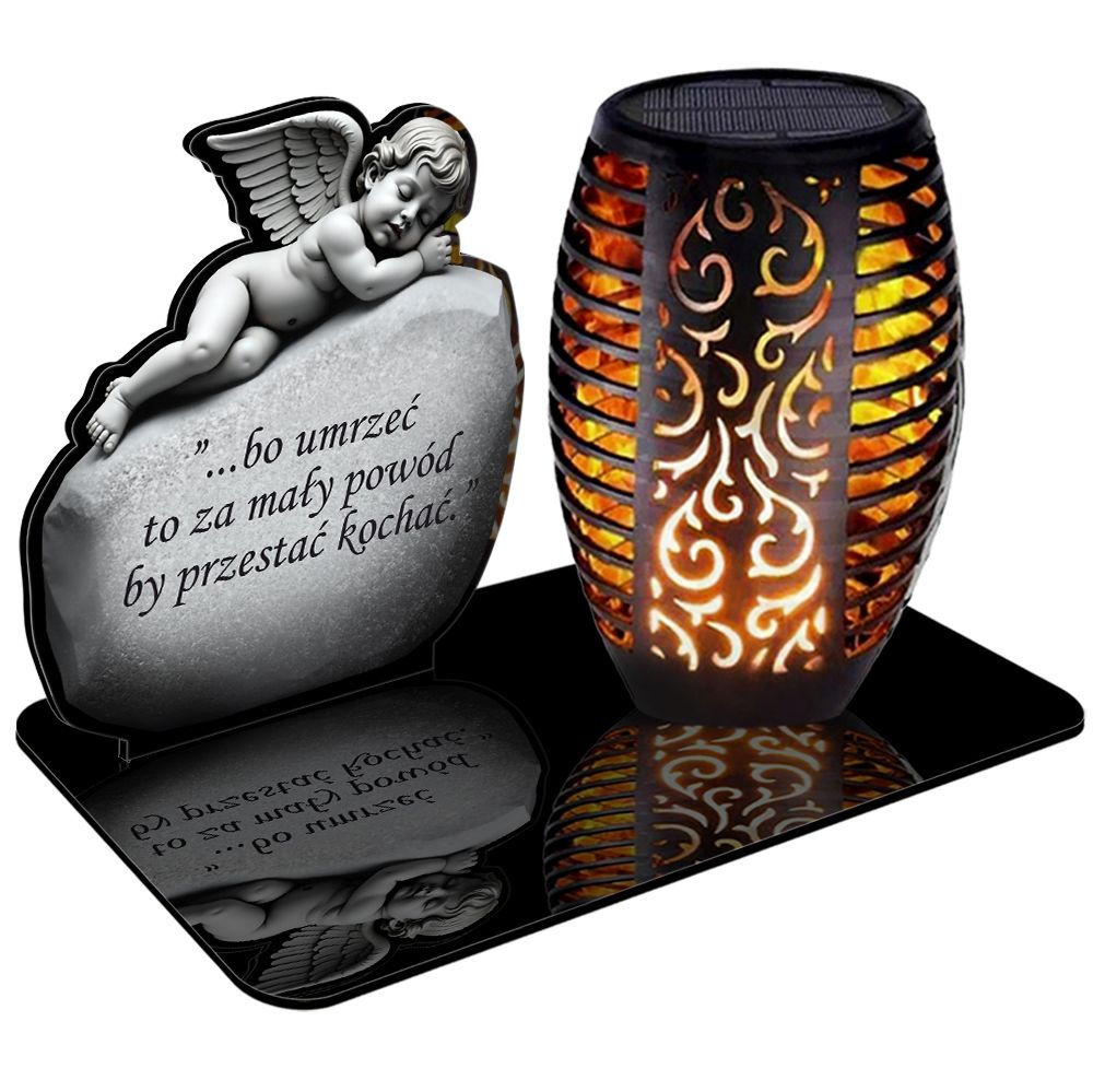 ZNICZ SOLARNY LED WIECZNY PODSTAWKA NA CMENTARZ GRÓB Aniołek EFEKT PŁOMIENIA dla DLA DZIECKA SYNA CÓRKI