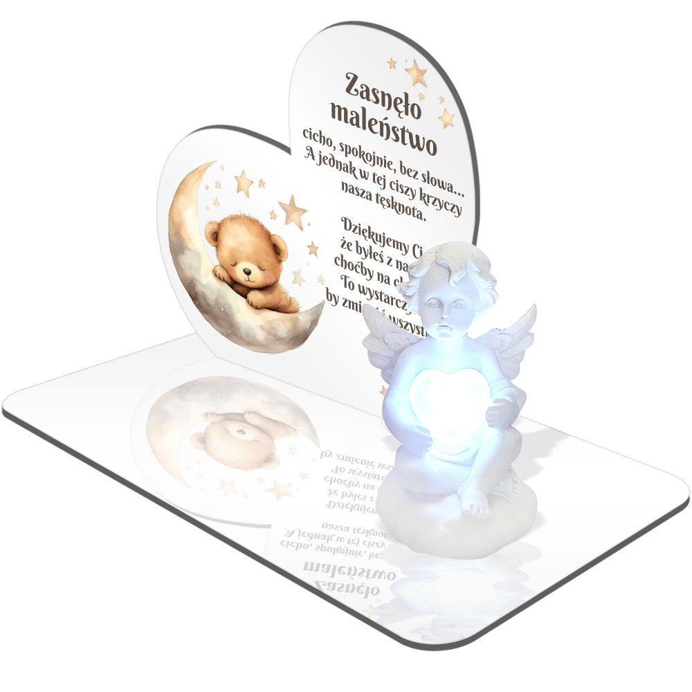 BIAŁY ZNICZ LED PREMIUM- znicz ANIOŁEK ŚWIECĄCY Z SERCEM LED