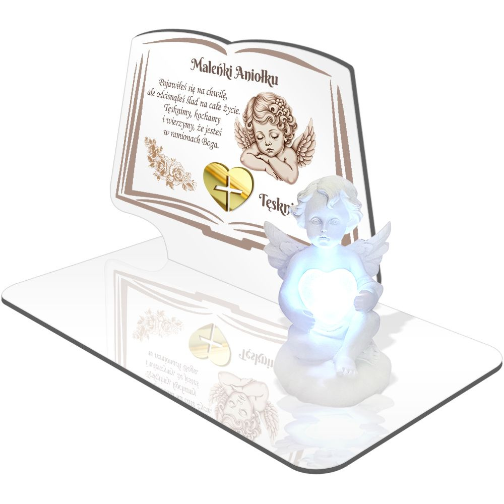 • ZNICZ LED GRÓB Dziecka Córki Syna ANIOŁEK PODSTAWKA NA CMENTARZ BIAŁY ANIOŁ