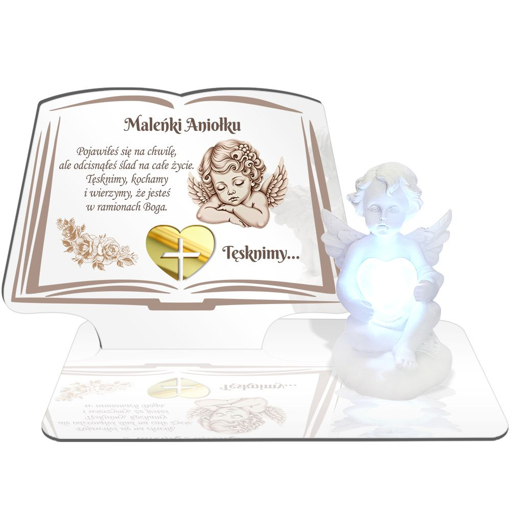ZNICZ LED GRÓB Dziecka Córki Syna ANIOŁEK PODSTAWKA NA CMENTARZ BIAŁY ANIOŁ
