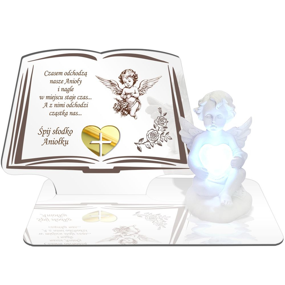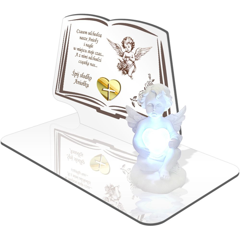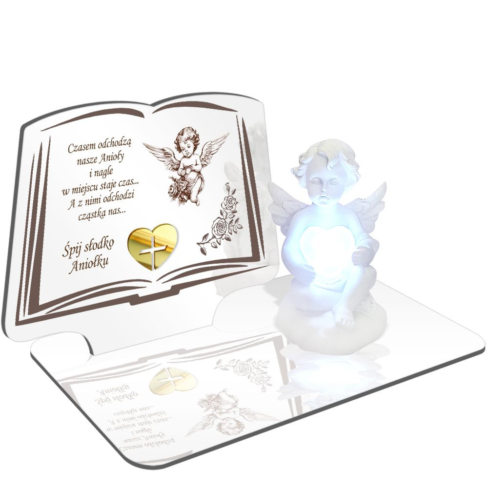 • ZNICZ LED GRÓB Dziecka Córki Syna ANIOŁEK PODSTAWKA NA CMENTARZ BIAŁY ANIOŁ