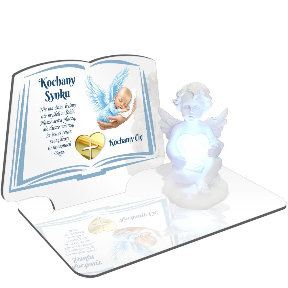 • ZNICZ LED GRÓB Dziecka Córki Syna ANIOŁEK PODSTAWKA NA CMENTARZ BIAŁY ANIOŁ