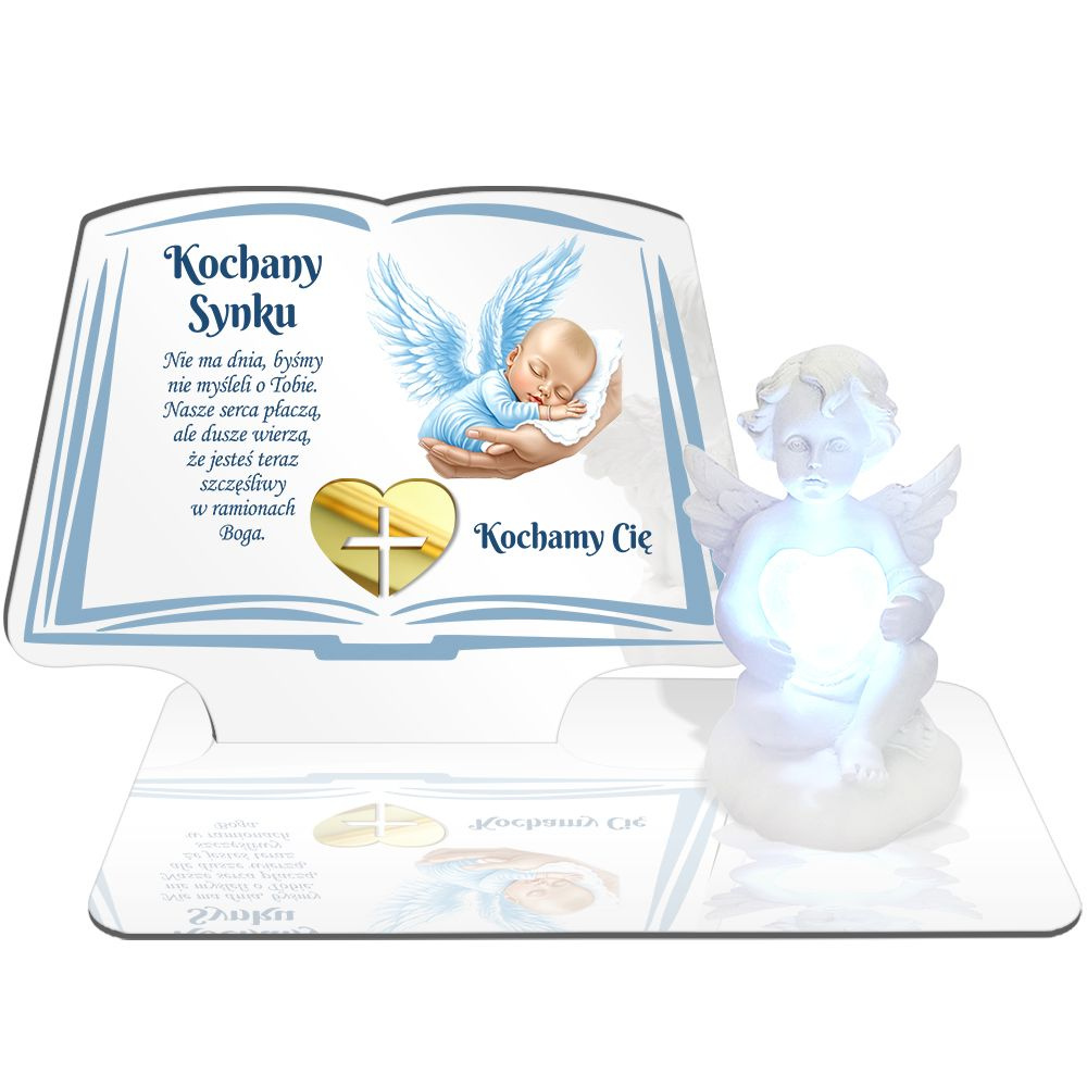 ZNICZ LED GRÓB Dziecka Córki Syna ANIOŁEK PODSTAWKA NA CMENTARZ BIAŁY ANIOŁ