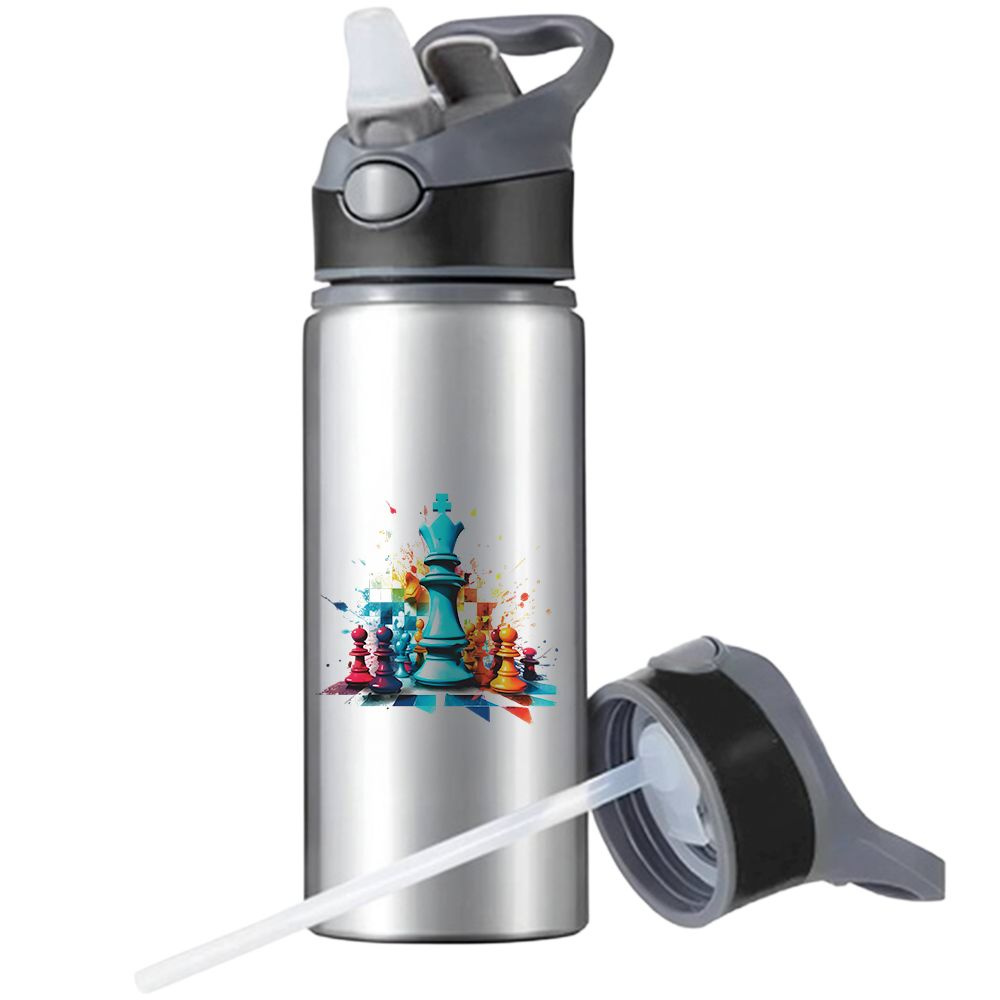 • BIDON SPORTOWY BUTELKA NA WODĘ SŁOMKĄ UCHWYTEM SZACHISTY SZACHISTA SZACHY