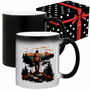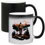 Kolor: czarny (na zimno), po zalaniu gorącym napojem pojawia się grafika, po ostygnięciu grafika znika kubek wraca do koloru czarnego.