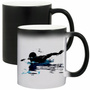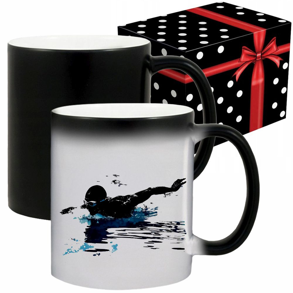 Kolor: czarny (na zimno), po zalaniu gorącym napojem pojawia się grafika, po ostygnięciu grafika znika kubek wraca do koloru czarnego.