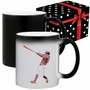 Kolor: czarny (na zimno), po zalaniu gorącym napojem pojawia się grafika, po ostygnięciu grafika znika kubek wraca do koloru czarnego.