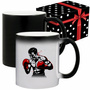Kolor: czarny (na zimno), po zalaniu gorącym napojem pojawia się grafika, po ostygnięciu grafika znika kubek wraca do koloru czarnego.