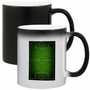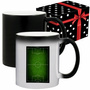 Kolor: czarny (na zimno), po zalaniu gorącym napojem pojawia się grafika, po ostygnięciu grafika znika kubek wraca do koloru czarnego.