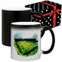Kolor: czarny (na zimno), po zalaniu gorącym napojem pojawia się grafika, po ostygnięciu grafika znika kubek wraca do koloru czarnego.