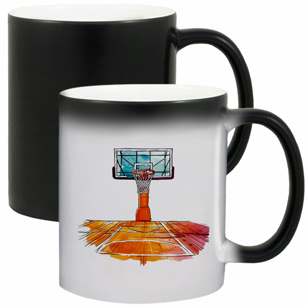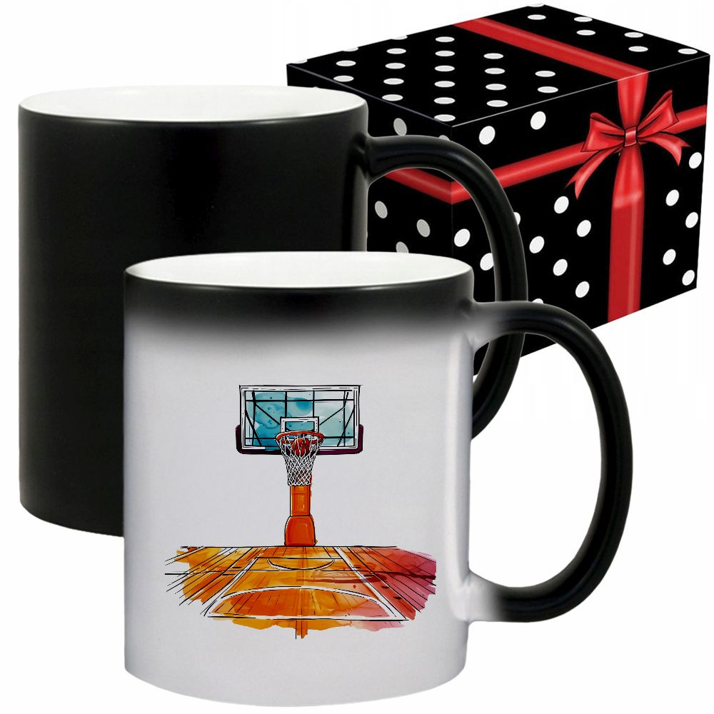 Kolor: czarny (na zimno), po zalaniu gorącym napojem pojawia się grafika, po ostygnięciu grafika znika kubek wraca do koloru czarnego.