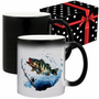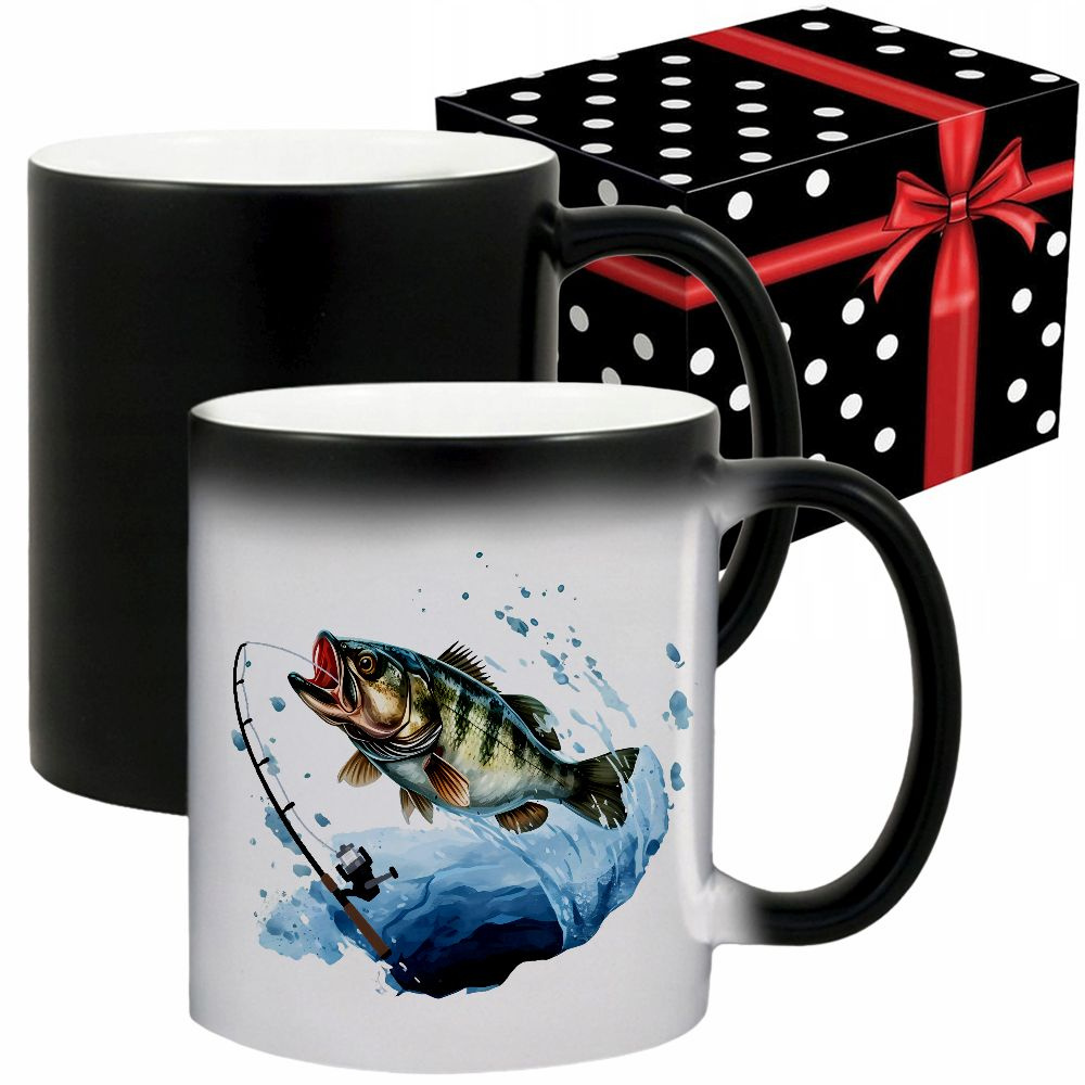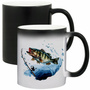 Kolor: czarny (na zimno), po zalaniu gorącym napojem pojawia się grafika, po ostygnięciu grafika znika kubek wraca do koloru czarnego.
